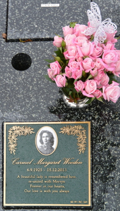 It is with a heavy heart that I report Carmel Wooden’s passing. She left us to go to God today 15 December 2013, aged 88 years, after a long stay in Woodlands nursing home, where she was cared for with much love and dignity. She was blessed by a priest earlier today and had a peaceful end, attended at her bed side by her daughter, Carmel-Anne.